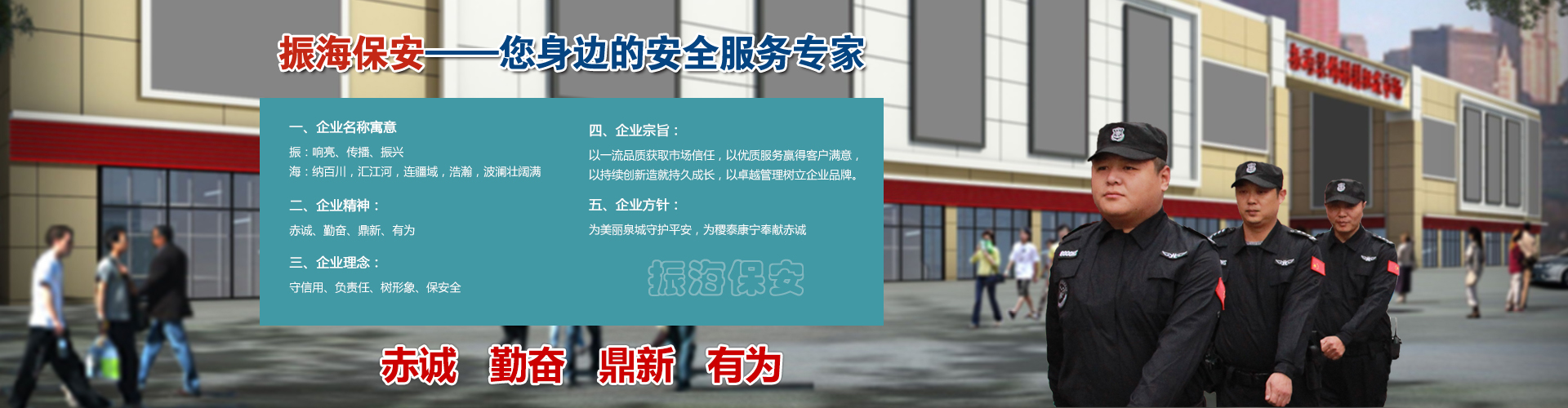 山東振海保安服務(wù)有限公司是一家專(zhuān)業(yè)的保安服務(wù)公司,提供人防安保、臨時(shí)勤務(wù)安保、危機(jī)處理安保、犬防安保、反跟蹤、調(diào)查、商業(yè)間諜等服務(wù),公司成立于2015年5月,是通過(guò)國(guó)家公安部門(mén)資質(zhì)認(rèn)證,經(jīng)山東省公安廳和濟(jì)南市工商局批準(zhǔn)成立的綜合性民營(yíng)保安公司。公司立足濟(jì)南,面向山東省內(nèi)外,開(kāi)展的業(yè)務(wù)涵蓋人防、技防、安檢、守護(hù)、隨身護(hù)衛(wèi)、大型活動(dòng)特勤等安保項(xiàng)目。公司總部坐落于濟(jì)南市市中區(qū)英雄山立交樞紐南側(cè)振海裝飾材料市場(chǎng)大樓;公司培訓(xùn)基地位于濟(jì)南市南部山區(qū)。